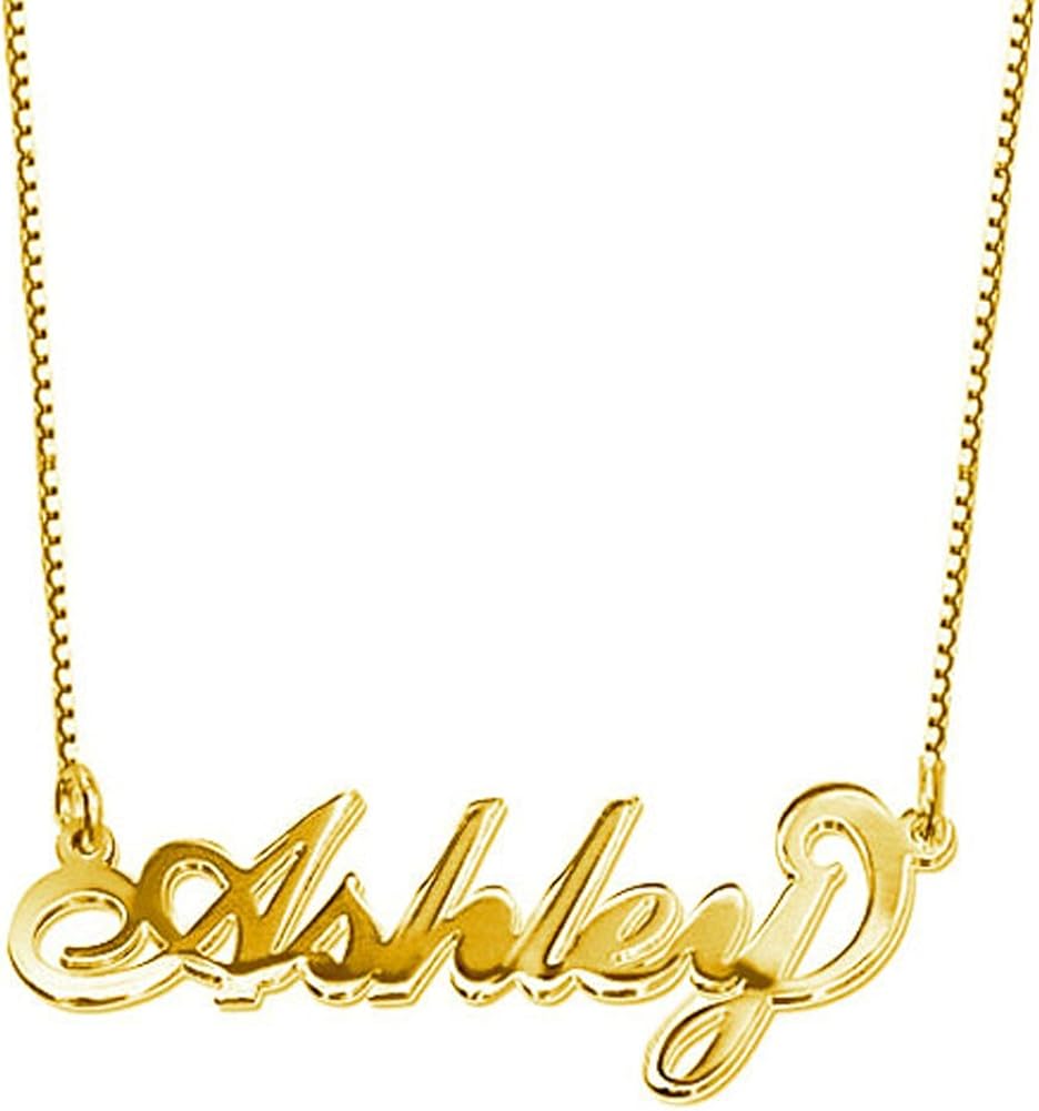 9ct Gold Name Necklace, ANY Name Made up to 10 Letters, Carrie Script Font Style, Choose from 4 Plate Sizes & 3 9ct Gold Chain Styles. FREE UK delivery Add to Favourites 9ct Yellow Gold Personalised Classic Name Necklace - customised jewellery - solid gold necklace - personalised jewellery - name gift (6.2k) £ 99.95. FREE UK delivery.