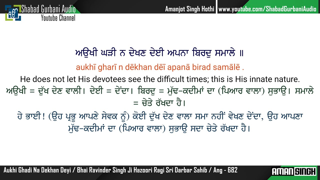 Shabad Kirtan. Album: Aukhi Ghadi Na Dekhan Deyi. Listen online and download Aukhi Ghadi Na Dekhan Deyi mp3, mp4 track by Ravinder Singh (Hazoori Ragi Sri Darbar Sahib Amritsar) from album Aukhi Ghadi Na Dekhan Deyi in Shabad Kirtan category/genre on example.com for free.