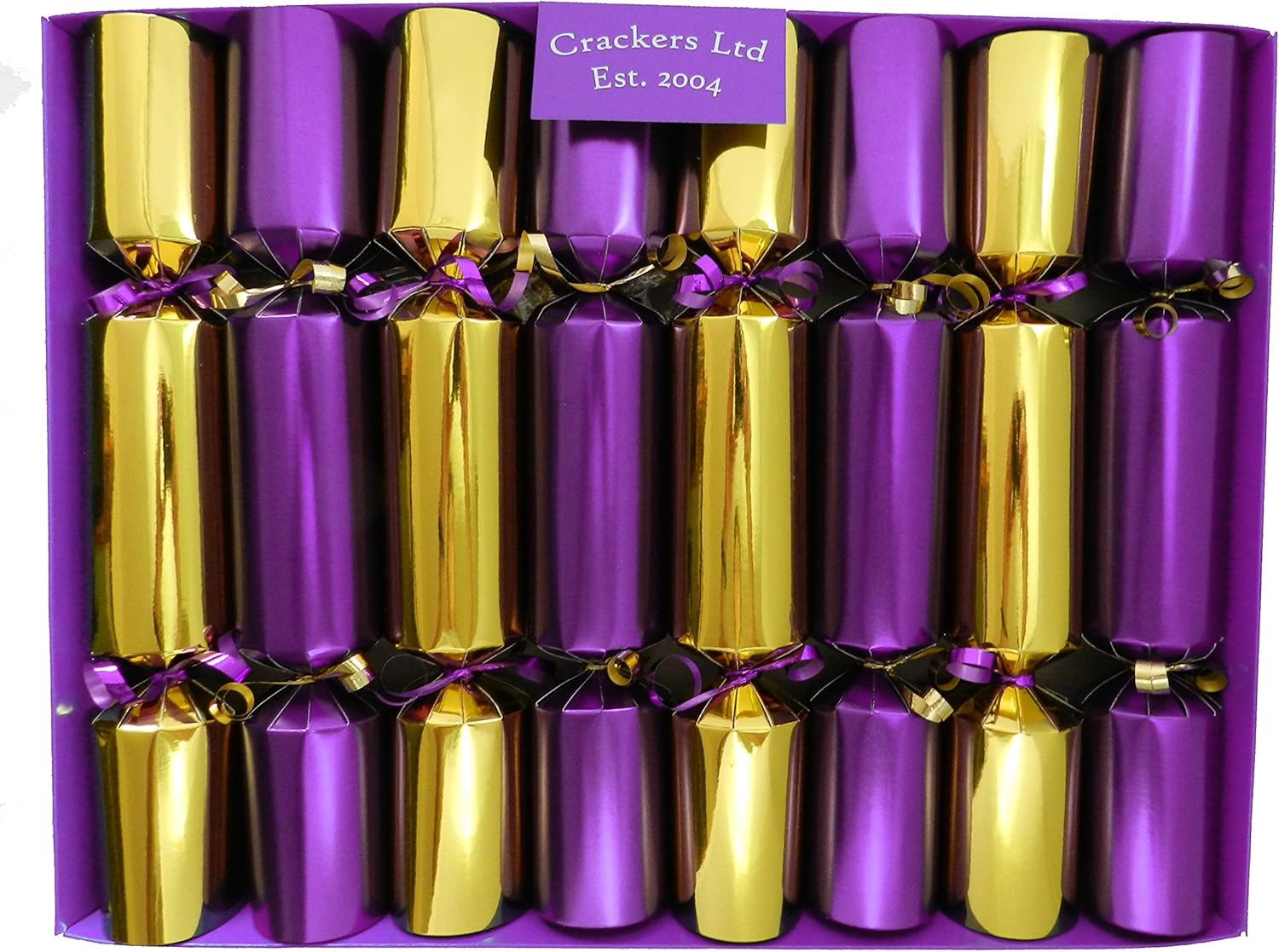 Crackers Fill Your Own Christmas Crackers Box of 8 in Gold and Purple with matching Trim and