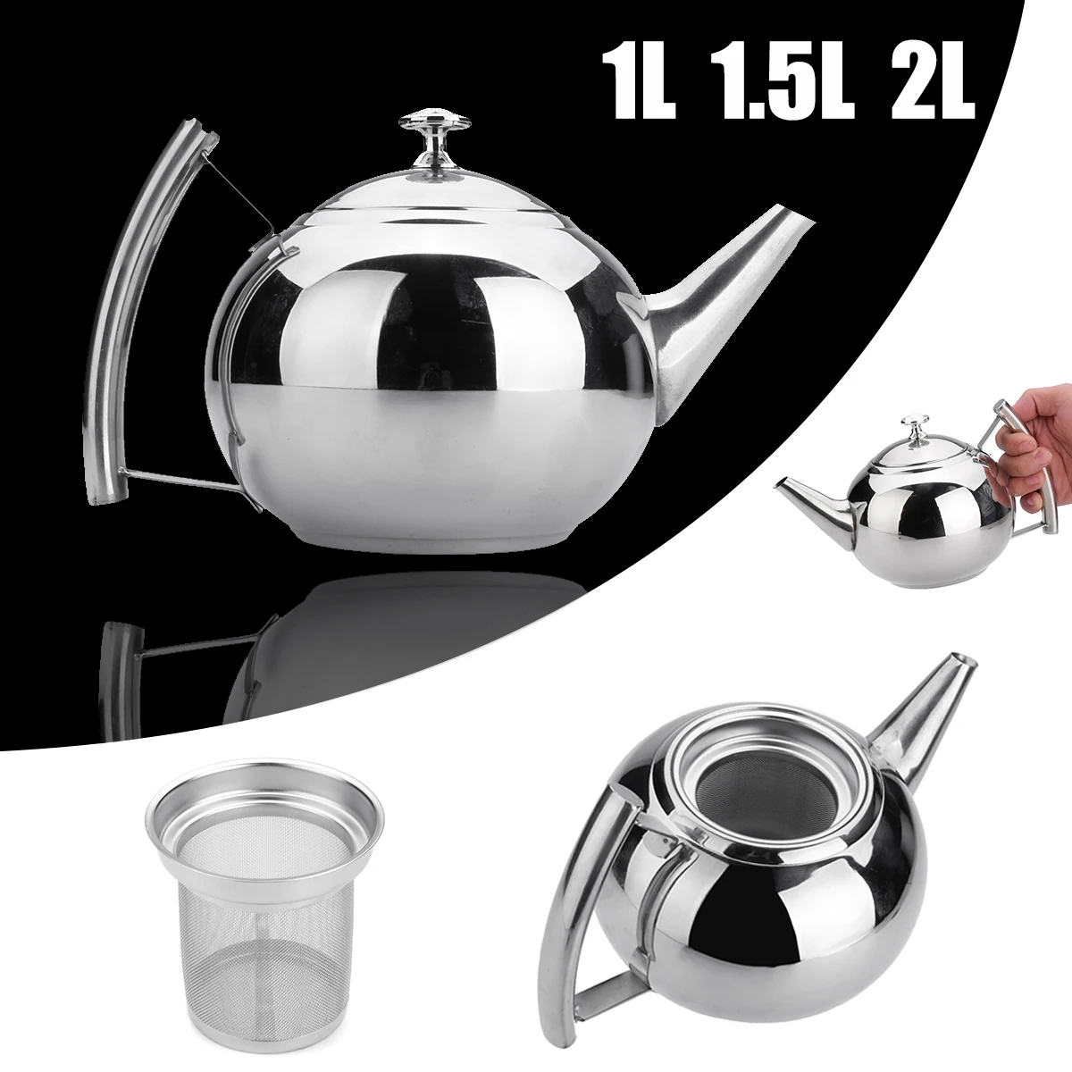 1/1.5/2L Stainless Steel Tea Pot with Tea Strainer Teapot with Tea Infuser Teaware Sets Tea