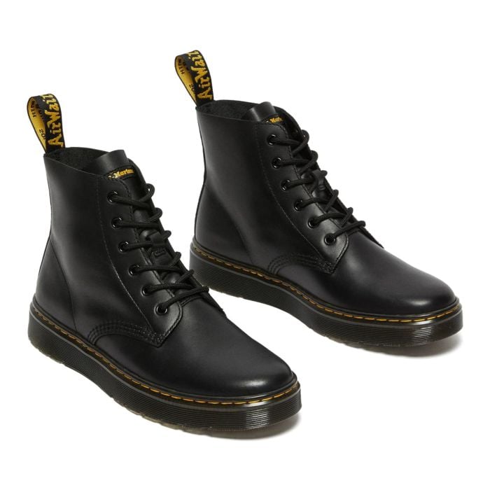 Details. Our Docs boots and shoes are always evolving. And the Thurston boot is another spin on our classic silhouette for the new generation. Built from a classic waxy Lusso leather on a lighter Vibe sole, it's a contemporary takedown of our headlining DM's styles. Yellow stitching and heel loop cements the DNA.