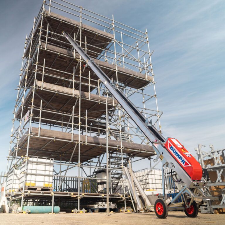 Bumpa Hoist 8m. The Bumpa Hoist is a portable conveyor belt designed for quickly and safely hoisting building materials to higher elevations. It's a preferred choice among roofers and construction workers for its efficiency, portability, and ability to dramatically increase the pace of work.